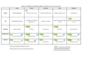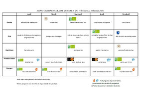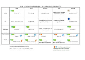 Le menu des repas de vos enfants en maternelle et en élémentaire à Céret.