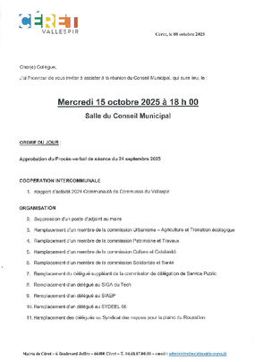 Conseil Municipal du Mercredi 19 Octobre 2022