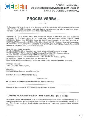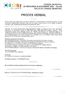 Conseil Municipal du Mercredi 16 Novembre 2022