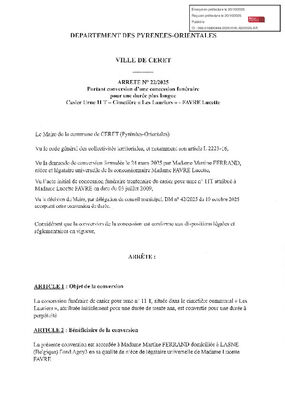 Arrêté 222025 Conversion concession funéraire FAVRE Lucette
