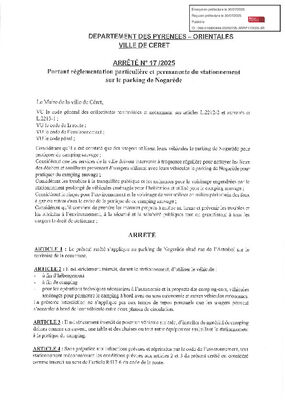 Arrêté 172025 Réglementation particulière et permanente stationnement parking de Nogarède