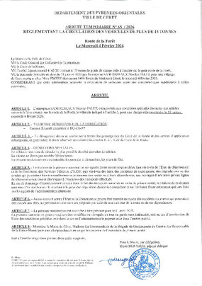 N° 65-2026 DEROGATION DE TONNAGE ROUTE DE LA FORET LE4 FEVRIER