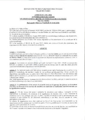 N° 190-2026 STATIONNEMENT RUE DES ICHIDES DU 9 MARS AU 24 AVRIL