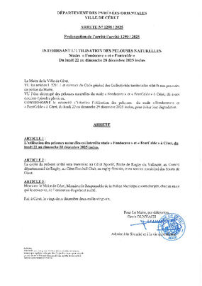 N°1298-2025 INTERDICTION PELOUSES STADES 22 AU 28 DECEMBRE