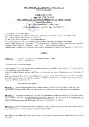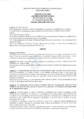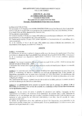 N° 48-2026 AUTORISATION DE VOIRIE CH DU RIU CERDA DU 16 AU 23 FEVRIER