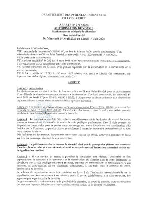 N° 272-2026 TRAVAUX RUE ST FERREOL DU 1ER AVRIL AU 1ER JUIN