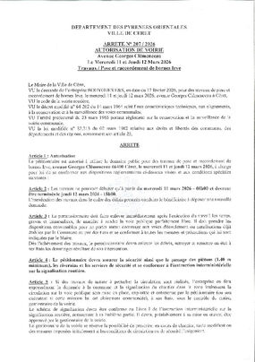 N° 207-2026 RACCORDEMENT BORNES AV CLEMENCEAU LE 11 ET 12 MARS