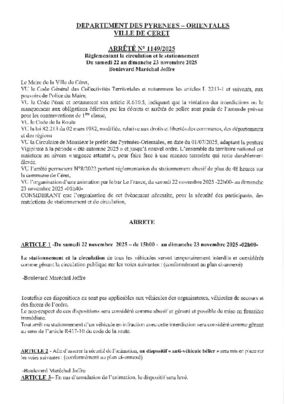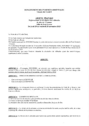 N° 1147-2025 DEROGATION DE TONNAGE ALLEE DE FONT GROSSE 20 AU 28 NOVEMBRE