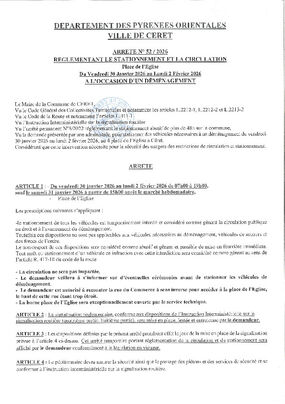 N° 52-2026 DEMENAGEMENT PLACE DE L'EGLISE DU 30 JANVIER AU 2 FEVRIER