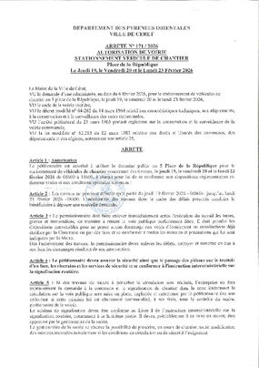 N°171-2026 STATIONNEMENT PLACE DE LA REPUBLIQUE LE 19, 20 ET 23 FEVRIER