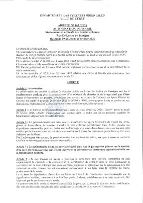 N°163-2026 STATIONNEMENT RUE DE LATTRE DE TASSIGNY DU 19 AU 26 FEVRIER