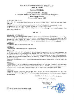 N°937-2024 AUTORISATION LOTERIE CERET SPORTIF 21 JANVIER 2025
