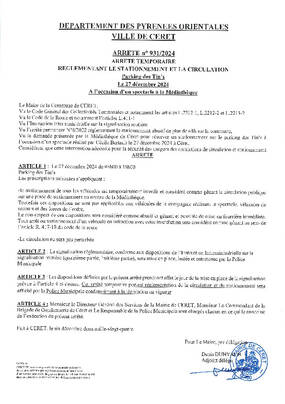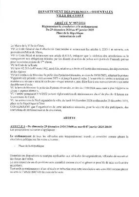 ARRETE 957/2024 CIRCU STAT PLACE REPUBLIQUE PROLONGATION ANIMATIONS DE NOEL JUSQU'AU 07/01/25