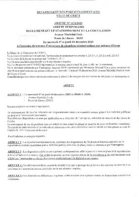 N° 1272-2025 TRAVAUX TELECOM LE 17 ET 18 DECEMBRE ROUTE DE LLAURO