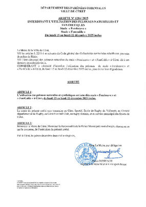 N°1284-2025 INTERDICTION PELOUSES STADES 15 AU 22 DECEMBRE