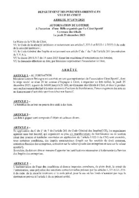 N°1079 AUTORISATION LOTERIE CERET SPORTIF 25 DECEMBREE