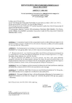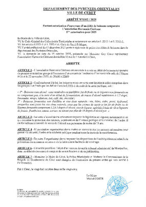 N°1102-2025 DEBIT DE BOISSONS CONCERT HARMONIE CERETANE 22 NOVEMBRE