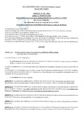 N° 292-2026 TRAVAUX RUE DE LA VERMEILLES DU 8 AU 24 AVRIL