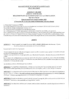 N°1061-2025 TRAVAUX RUE DE LAS HORTES DU 9 AU 16 OCTOBRE