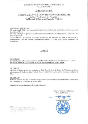 N° 75-2026 PROROGATION INTERDICTION PELOUSES JUSQU AU 1ER FEVRIER