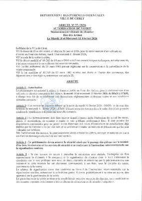 N°77-2026 STATIONNEMENT RUE DES ARENES LE 10 ET 11 FEVRIER