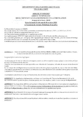 N°1050-2025 ABATTAGE ARBRE AV DE LA GARE ENTRE LE 13 ET LE 28 OCT