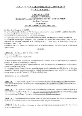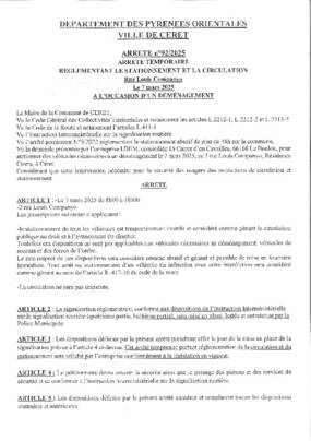 N° 92-2025 DEMENAGEMENT RUE LOUIS COMPANYO LE 28 FEVRIER 2025