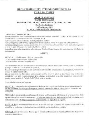 N°132-2025 DEMENAGEMENT RUE GASTON CARDONNE LE 15 ET 16 MARS