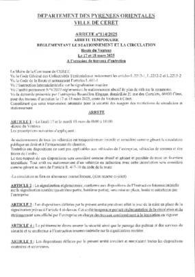 N°114-2025 CIRCU STAT ELAGAGE ROUTE DU VENTOUS LE 17 ET 18 MARS 2025