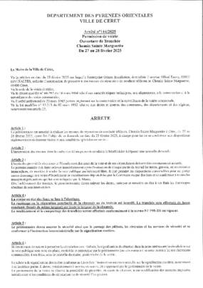 N°144-2025 VOIRIE TRAVAUX REPARATION CONDUITE TELECOM LE 27 ET 28 FEVRIER CHEMIN STE MARGUERITE