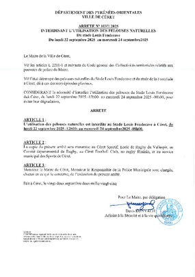 N° 1037-2025 INTERDICTION PELOUSE STADE FONDECAVE 22 AU 24 SEPTEMBRE