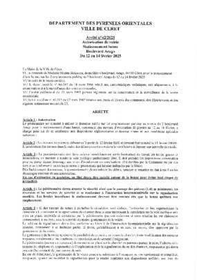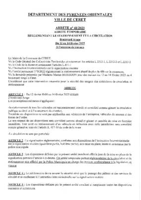 N°42-2025 AUTORISATION VOIRIE BD ARAGO DU 12 AU 14 FEVRIER