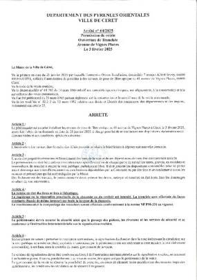N°64-2025 VOIRIE TRAVAUX FIBRE OPTIQUE LE 3 FEVRIER AVENUE VIGNES PLANES