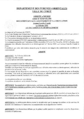 N°49/2025 CIRCU STAT DEMENAGEMENT LE 5 FEVRIER 2025 AVENUE CAMILLE CLAUDEL