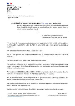 Arrêté préfectoral concernant l’adaptation des mesures de restrictions des usages de l’eau au 03 février 2026