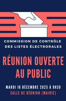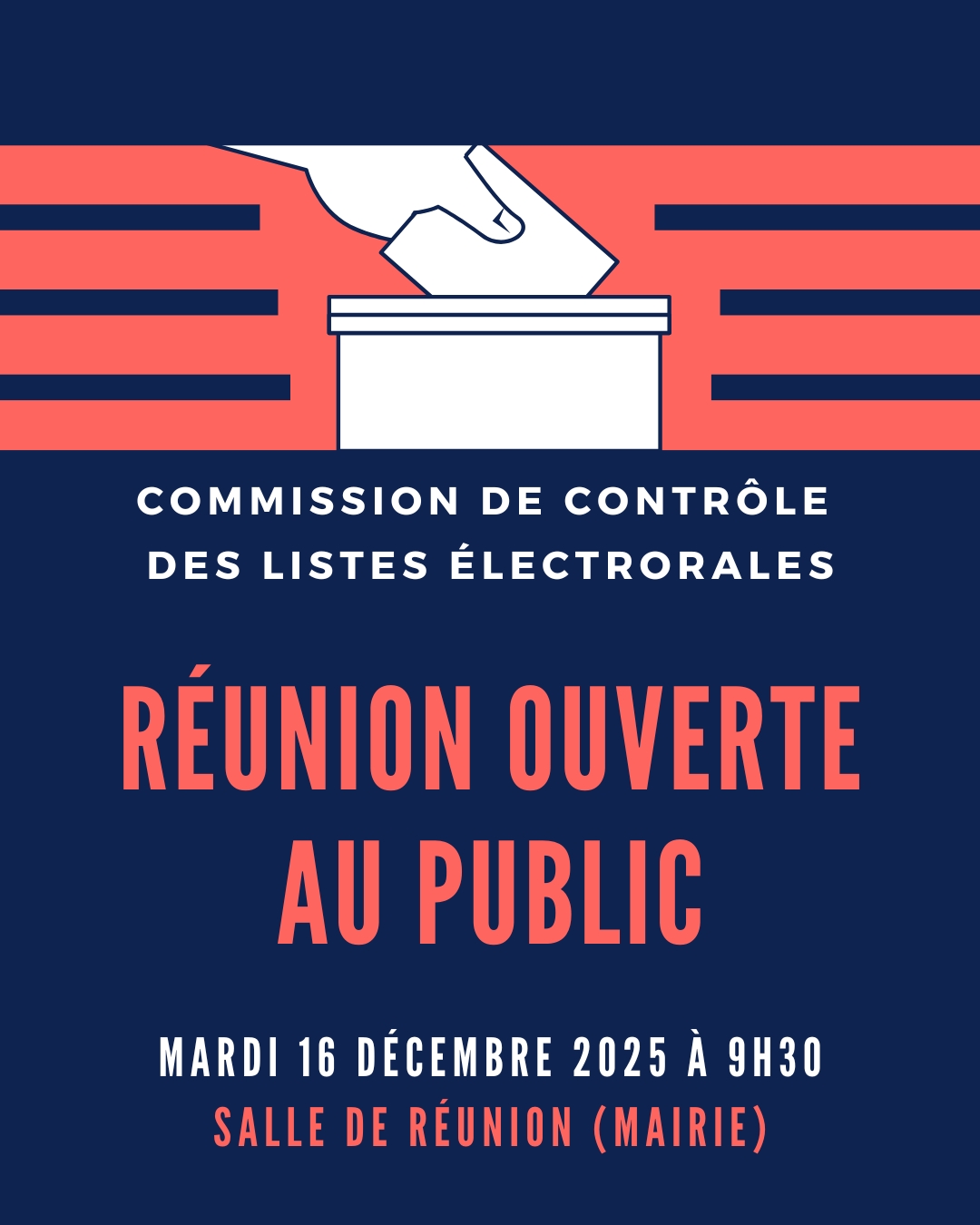 La prochaine réunion de la commission de contrôle des listes électorales se tiendra le mardi 16 décembre 2025 à 9h30, en mairie, dans la salle de réunion.