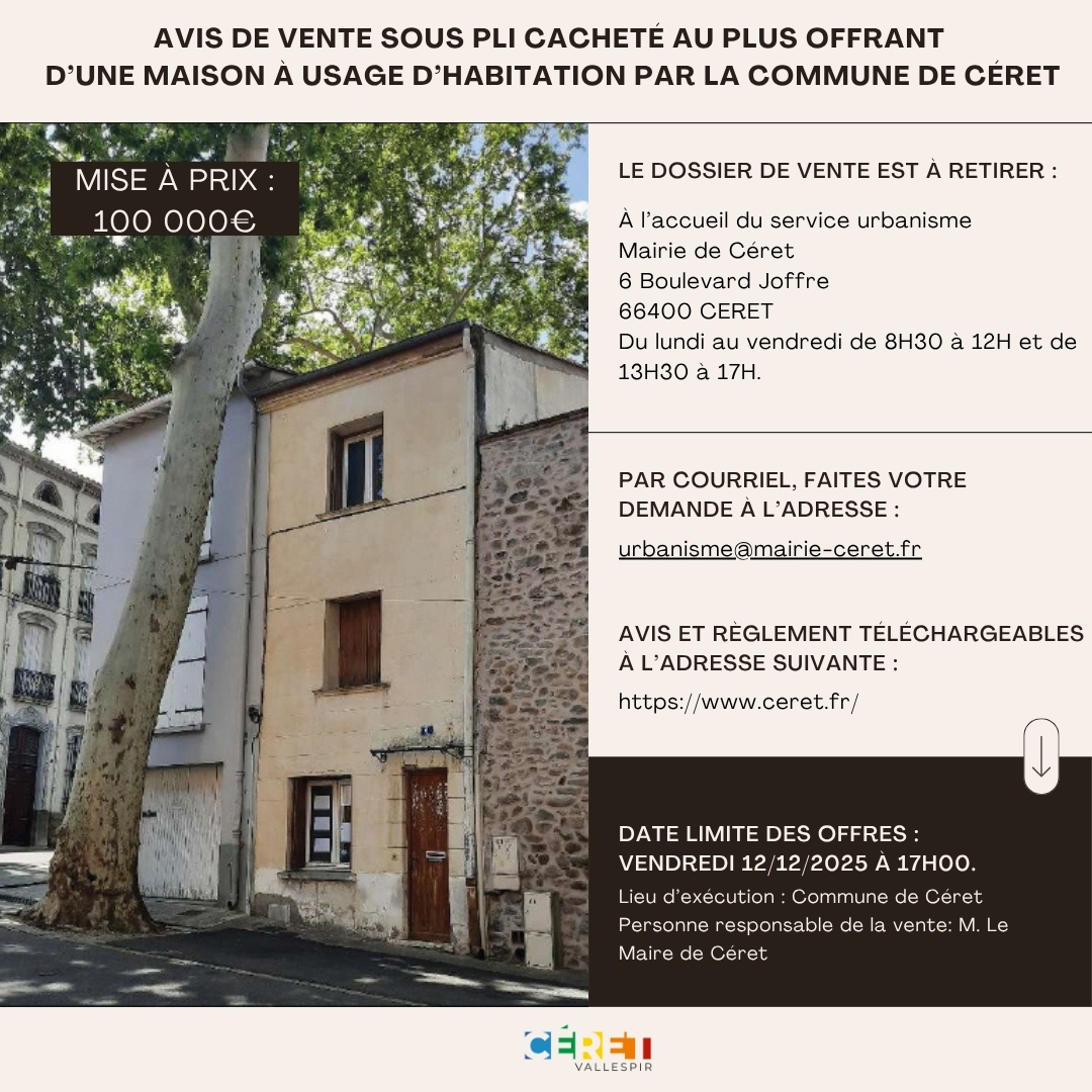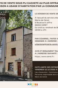 La ville met en vente une maison à usage d’habitation, située sur le territoire communal.