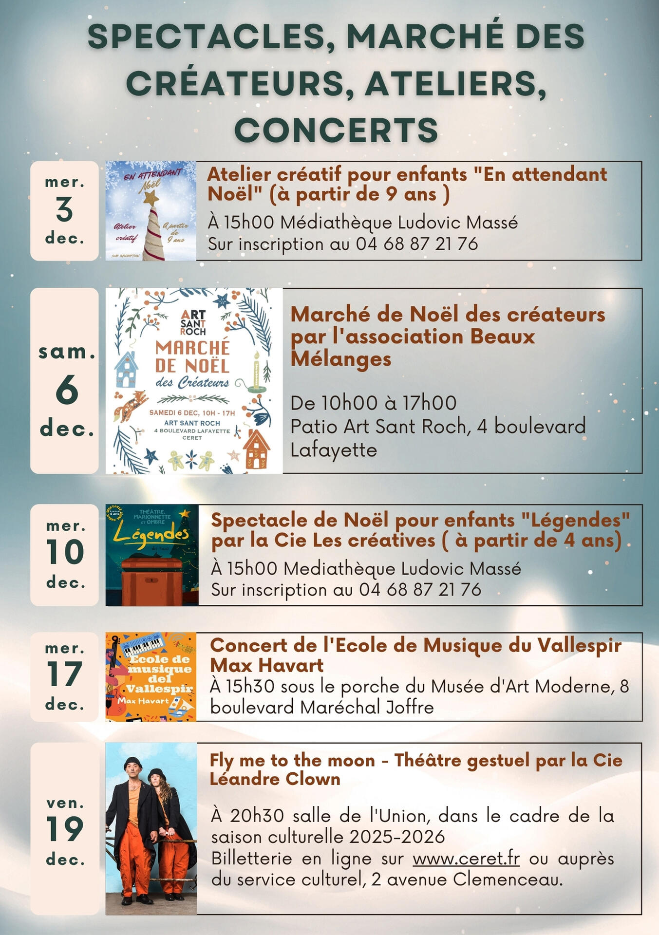 - Du Mercredi 03 au Vendredi 19 décembre 2025