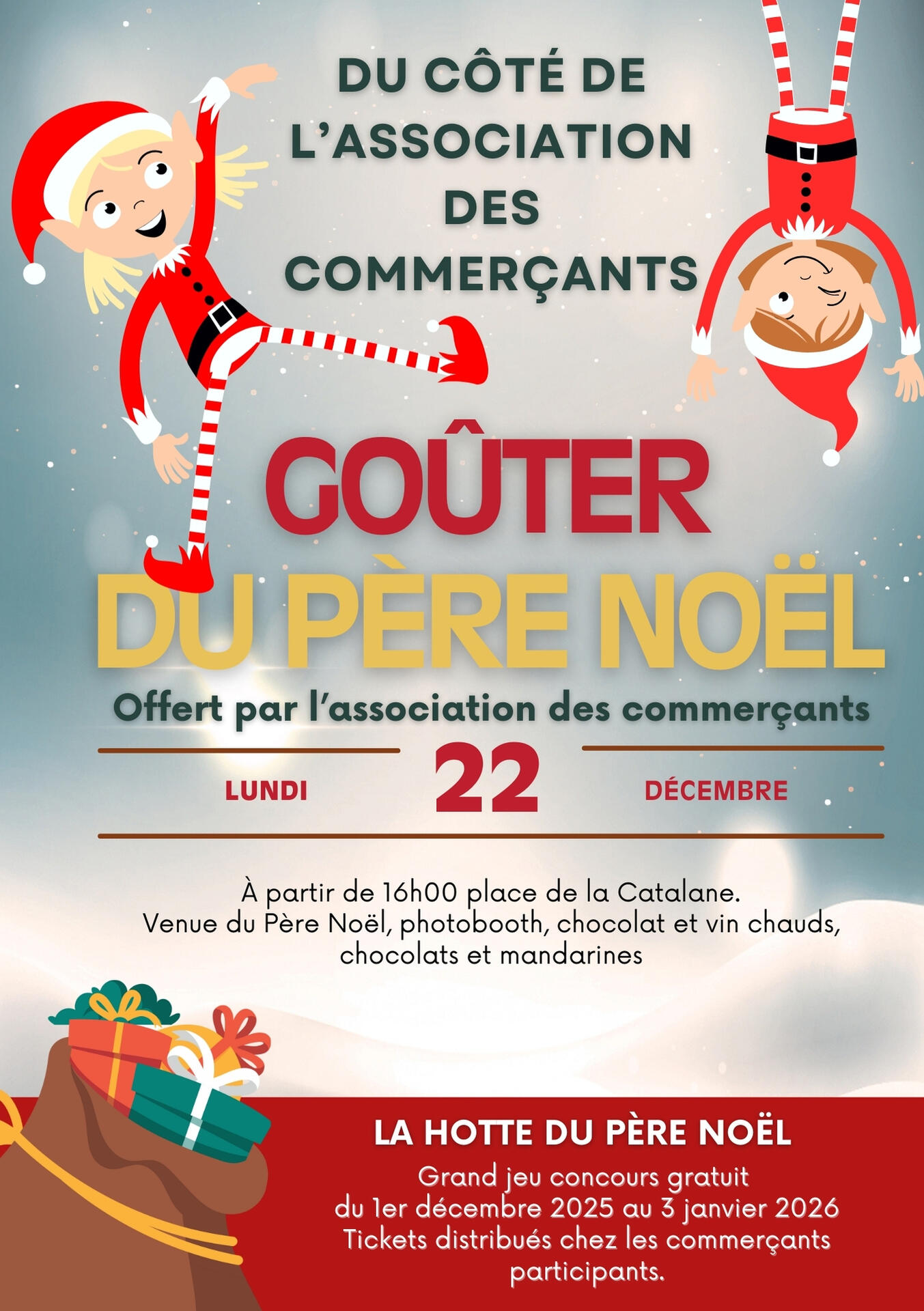 Parallèlement, la Hotte du Père Noël – jeu concours gratuit – est ouvert du 1er décembre 2025 au 3 janvier 2026 (Tickets distribués chez les commerçants participants).