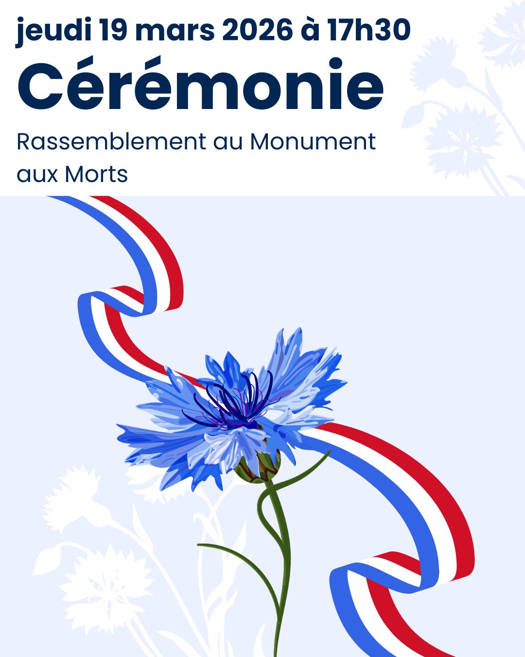 La ville vous invite à assister à la cérémonie commémorative en hommage aux morts pour la France lors de la guerre d’Algérie et des combats en Tunisie et au Maroc.