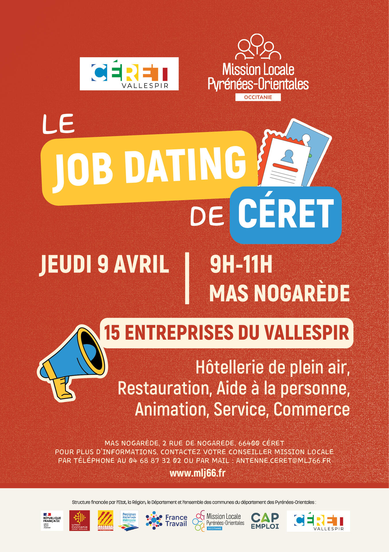 Pour plus d’informations, contactez la Mission Locale Pyrénées-Orientales au 04 68 87 32 02 ou par mail : antenne.ceret@mlj66.fr