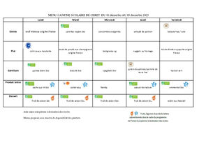 Le menu des repas de vos enfants en maternelle et en élémentaire à Céret.