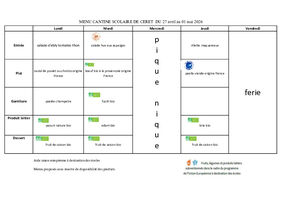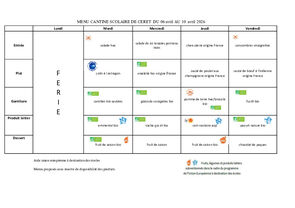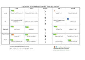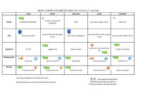 Le menu des repas de vos enfants en maternelle et en élémentaire à Céret.